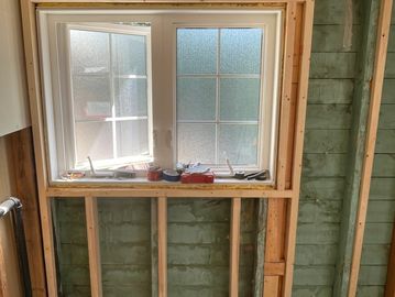 When walls are structurally sound, but out of plumb or square, the most cost effective approach is to add profiles to the existing wall studs, to make the walls perfectly plumb and square.