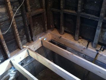 When possible, ceilings are reframed with new lumber.